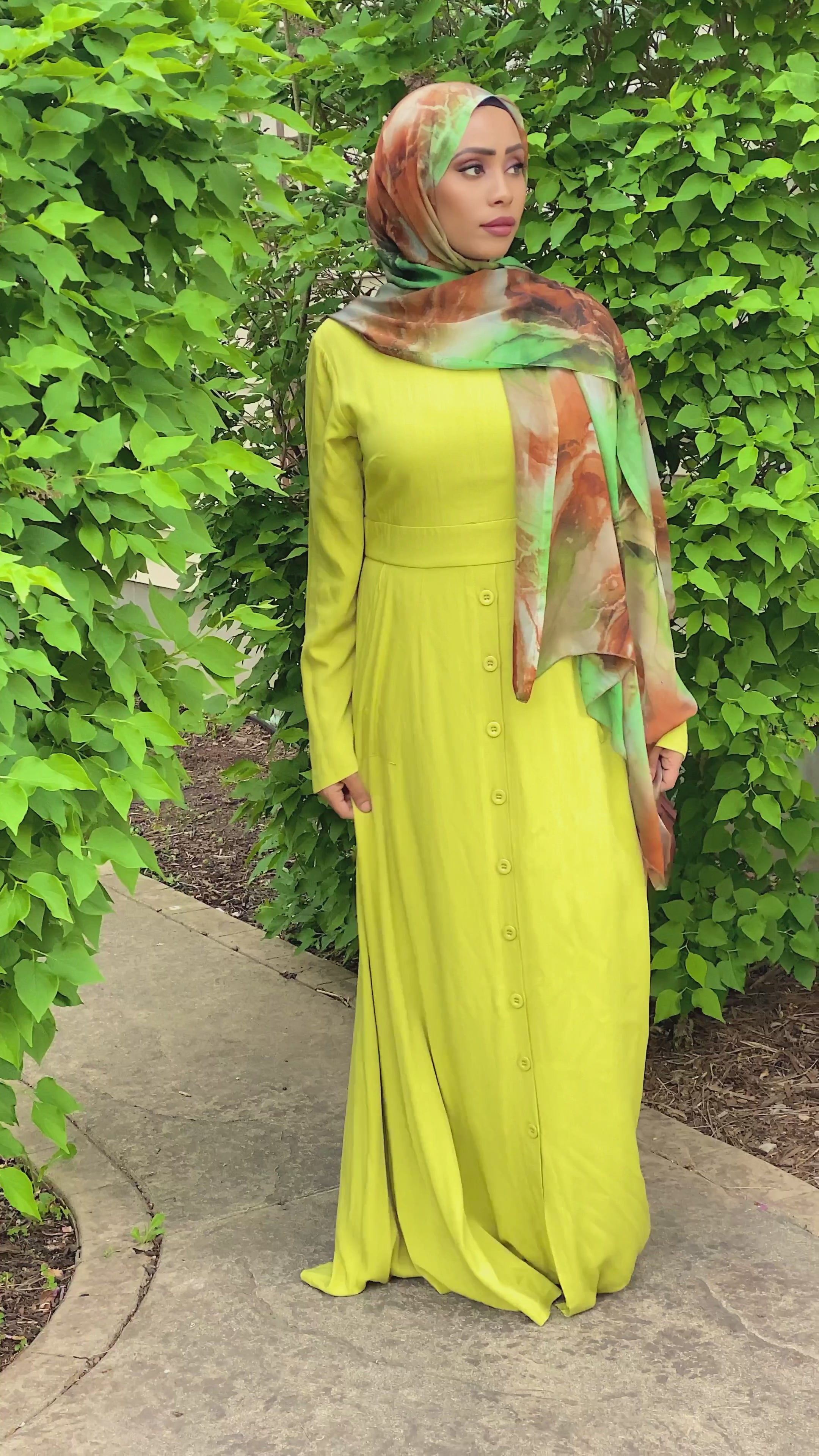 Experience the softness and beauty of our Manal button down Modal dress in a stunning apple green color. This must-have dress is fully lined and can be easily hand washed for convenience. Embrace modest fashion with confidence and grace! Also has pockets!