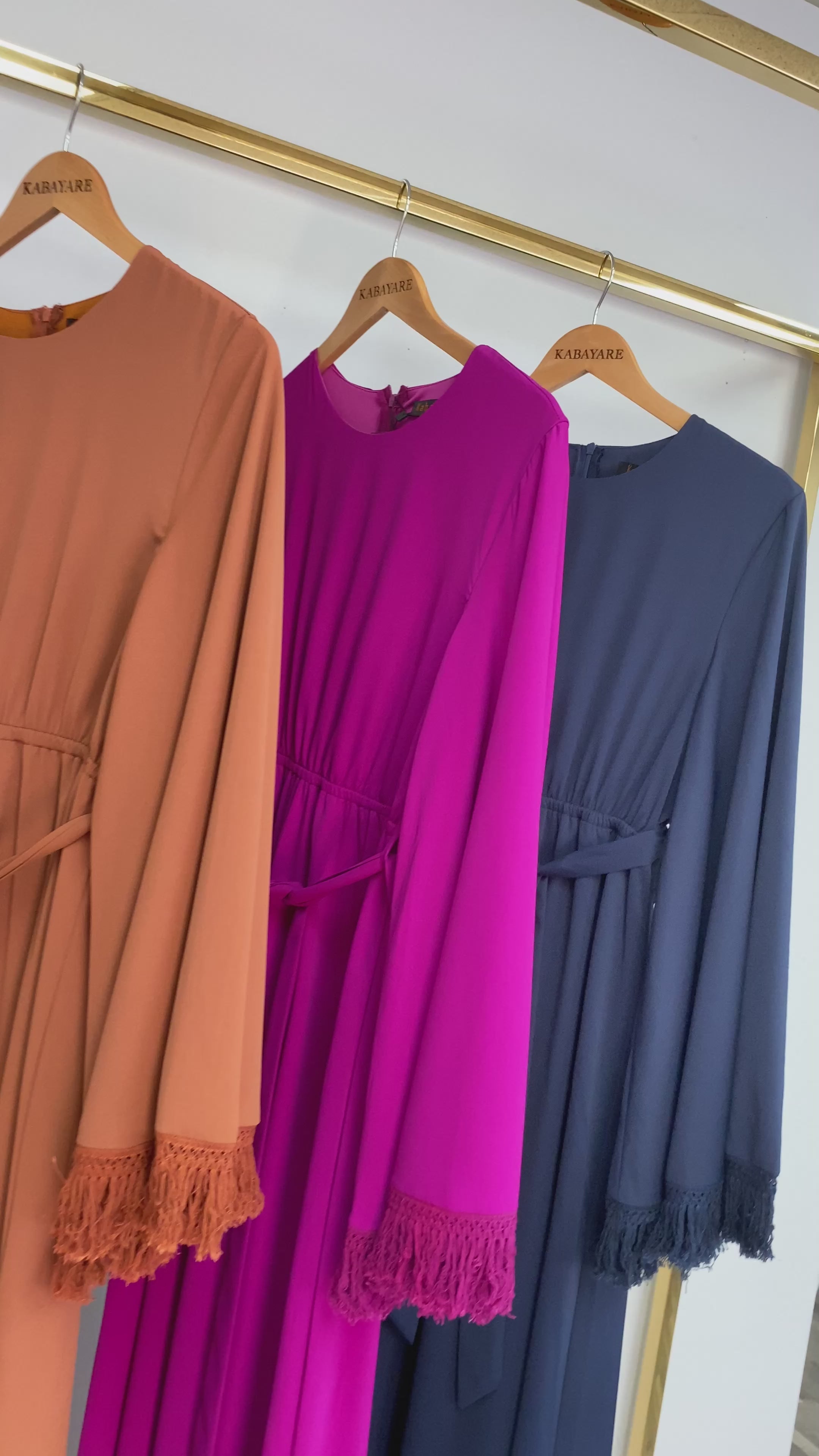 Be captivated by this elegant yet theatrical dress. It features large bell sleeves with tassel detail, crafted from fully lined polyester fabric for a luxurious look and feel. Step out in style with this one-of-a-kind piece.