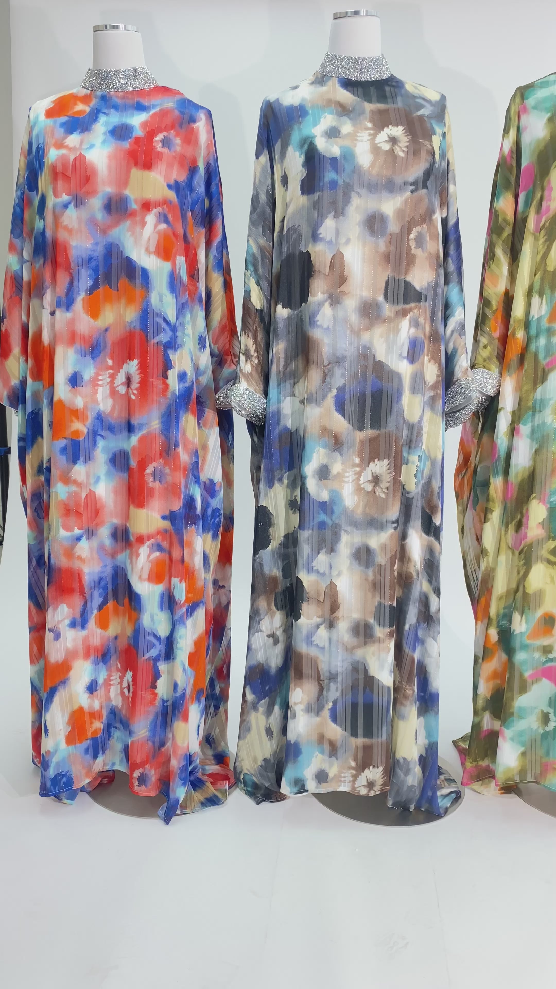 Experience ultimate elegance and femininity with Zohra silk chiffon kaftan abaya. Made from high quality polyester chiffon with a full lining for comfort, this beautifully crafted dress features a feminine flower blossom design. Elevate your wardrobe and embrace luxurious style with special event wear!
