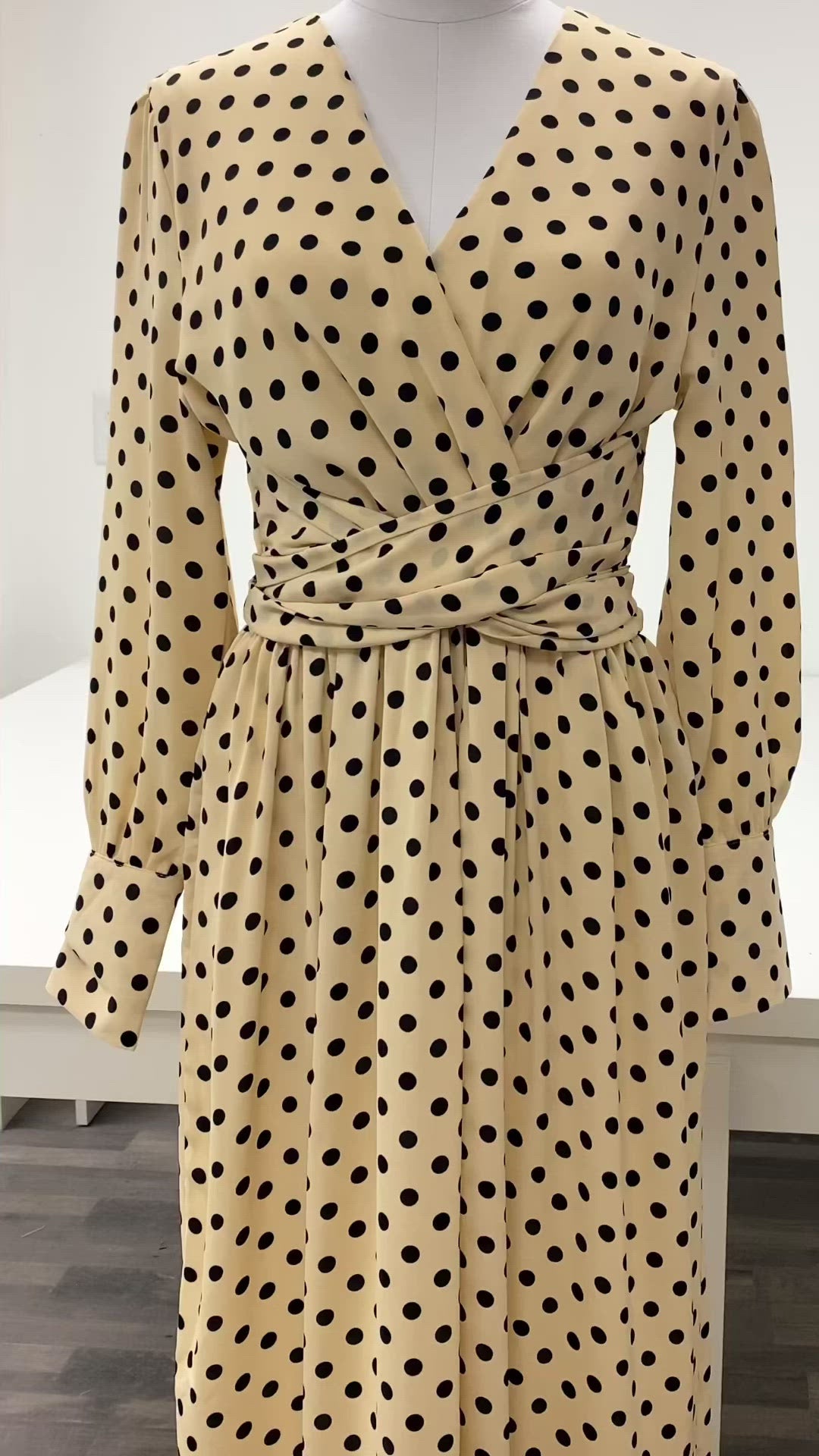 Buttercream Polka dot Long sleeve Maxi modest dress