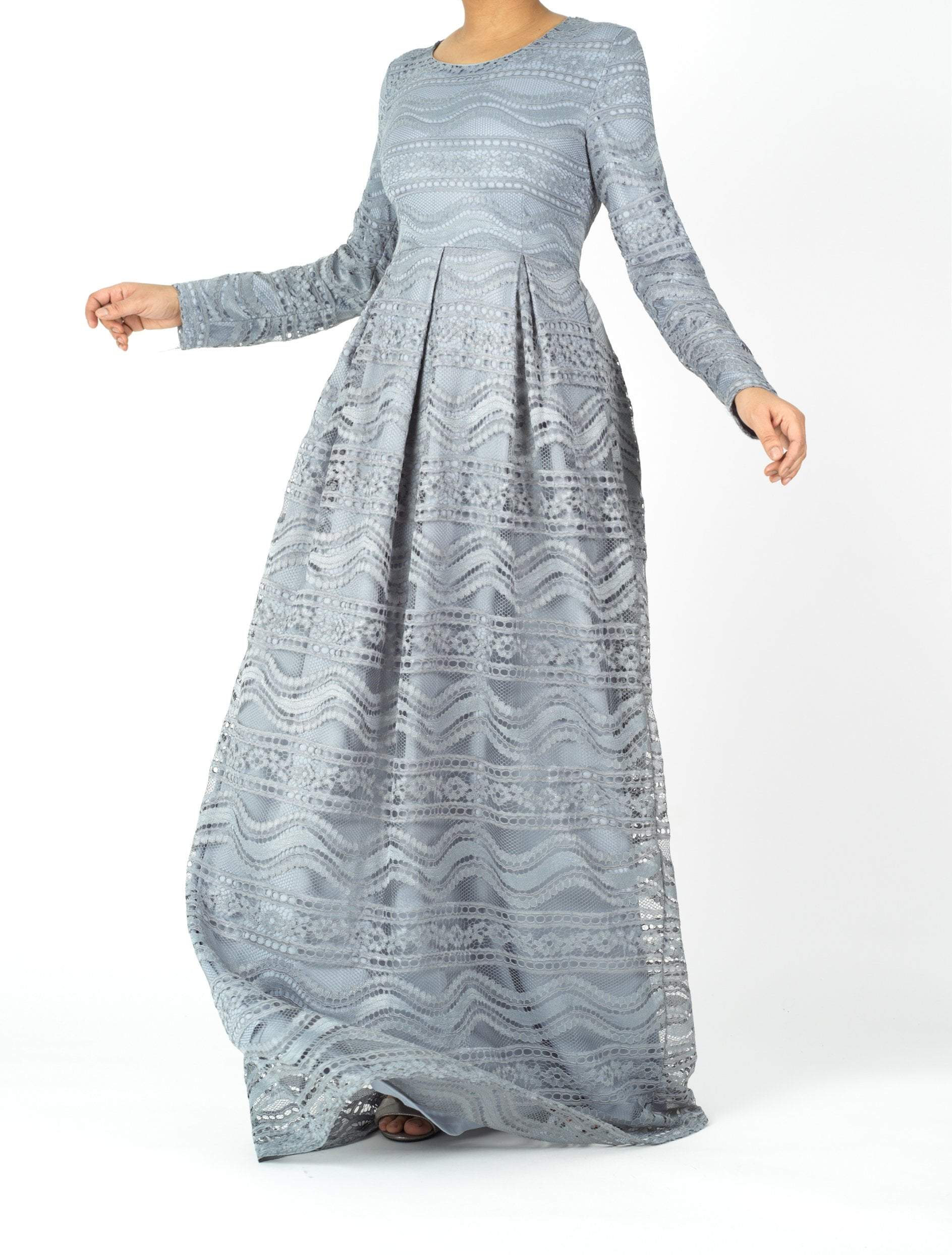 As soon as you touch this lace gown, it will be your Favorite Flair Lace long Sleeve Dress. It is party ready! Stunning pattern lace sweeps from the rounded neckline into a Pleat A-line skirt. . This gown is a rare find, similar to wild flowers in a desert garden. The lace is made from a thick and sturdy material, and this dress also features a fully lined under layer for comfort and modest appeal.