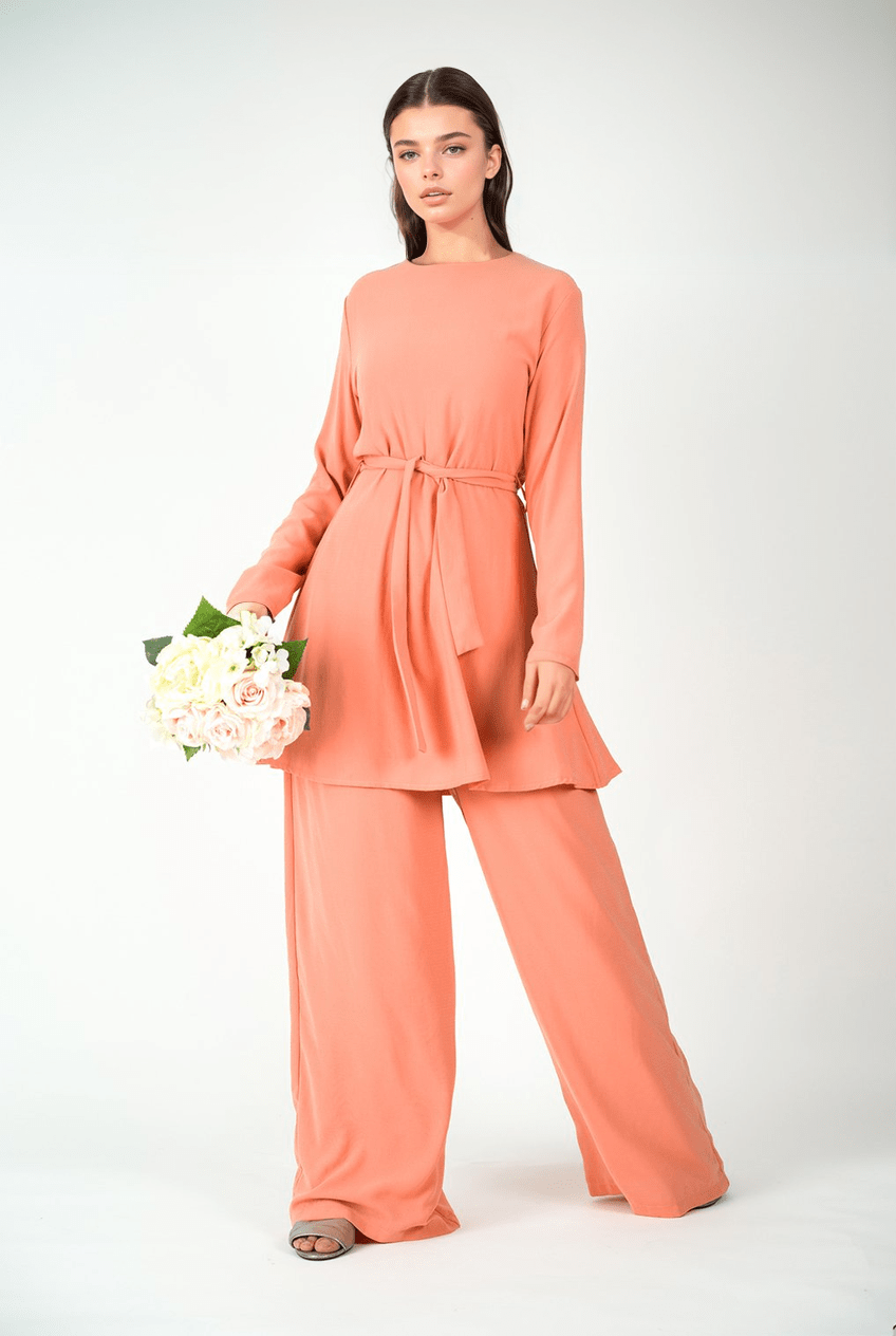 Peach Blush Solid Modest Matching set